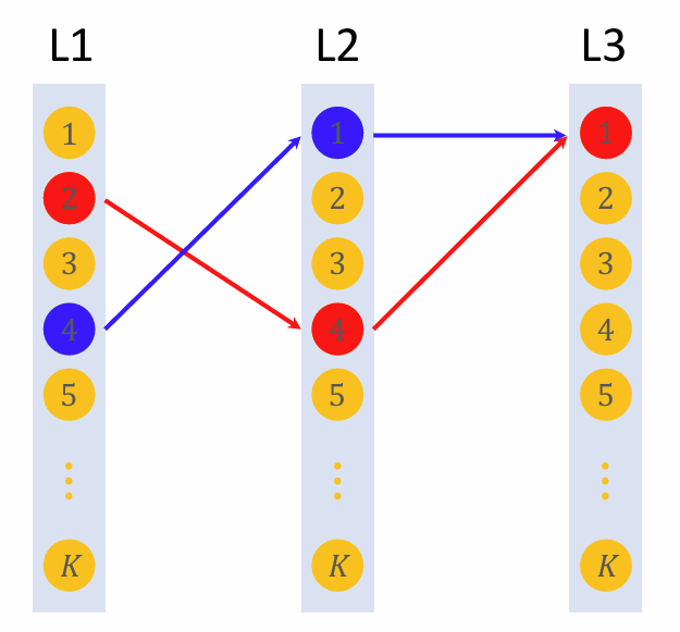 • 让每个物品关联 JJ 条路径: