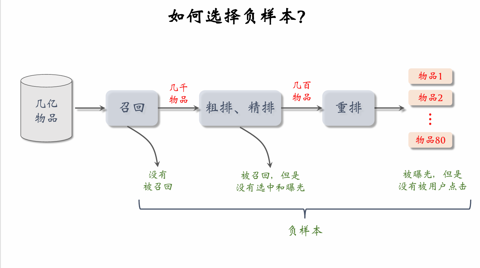 • 如果用户点击过物品,且物品对应路径 path\text{path},则更新神经网络参数使 p(pathx)p(\text{path} \mid \mathbf{x}) 变大。