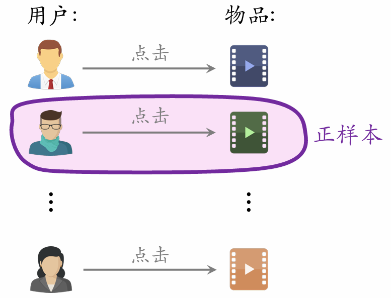 • 用户 ➝ 物品列表:用户近期交互过的 nn 个物品。