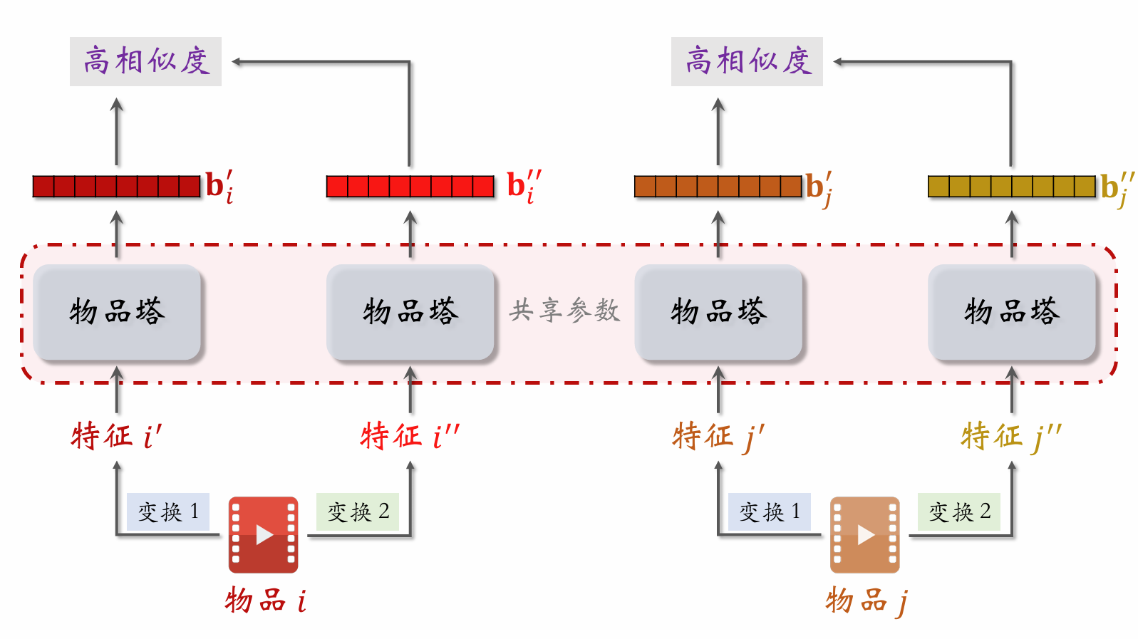 • 一个物品被表征为 JJ 条路径: path1,,pathJ\text{path}_1, \dots, \text{path}_J