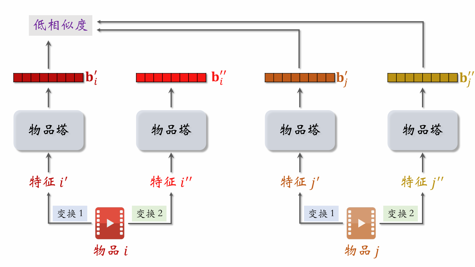 • 一位用户看过 n 个物品,本次召回 r 个物品,如果暴力对比, 需要 O(nr)O(nr) 的时间。